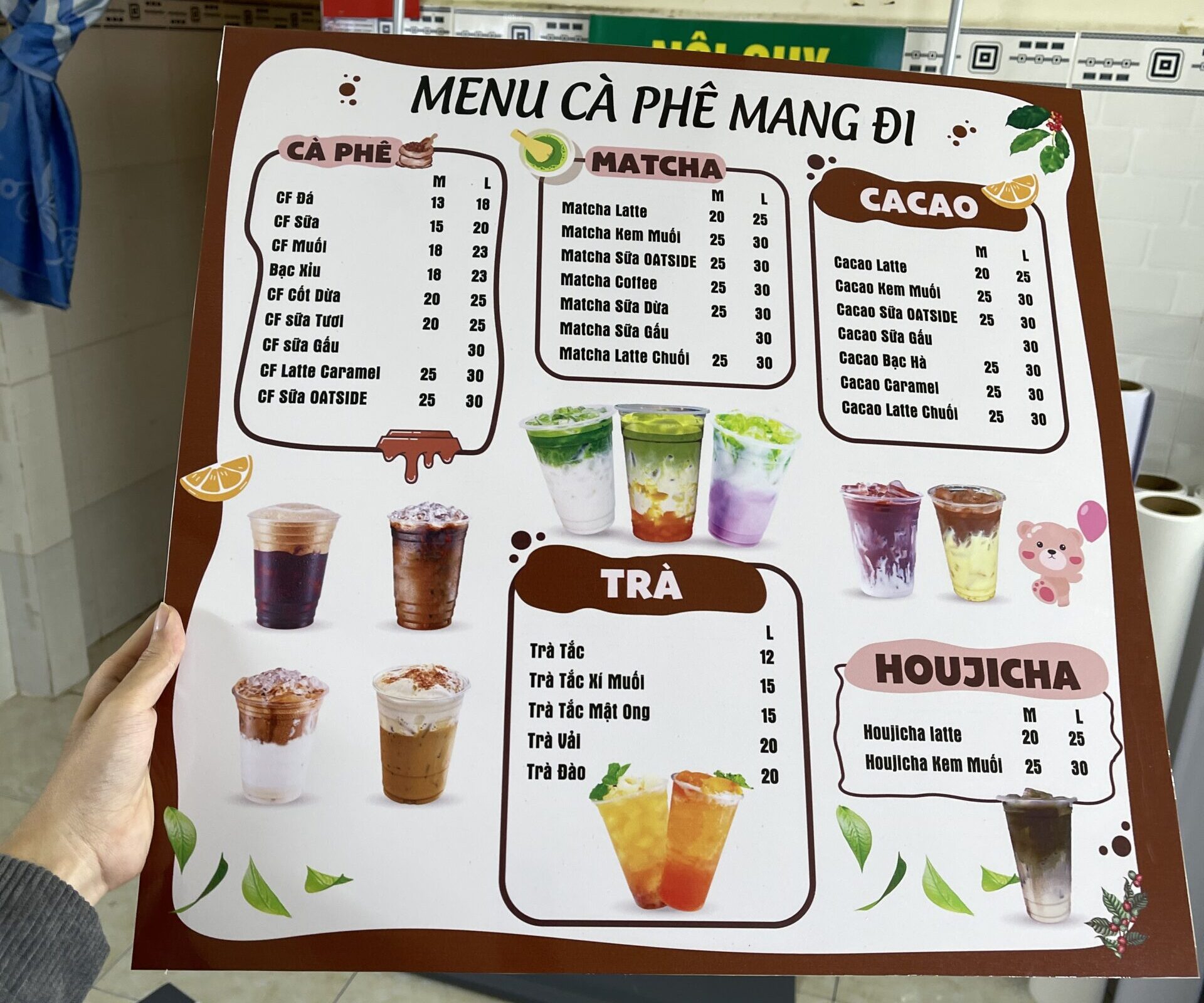 Với không gian quầy thường khá nhỏ, một chiếc menu kích thước vừa đủ – không quá to gây vướng, không quá nhỏ để khách phải nheo mắt – là yếu tố then chốt giúp cửa hàng vận hành trơn tru.
